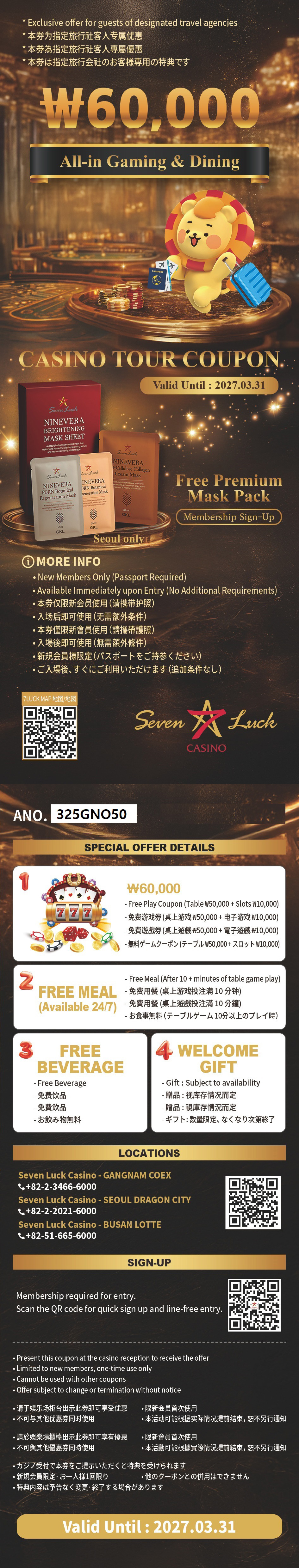 50,000韓元投注券+免費餐食,釜山入境者額外優惠!